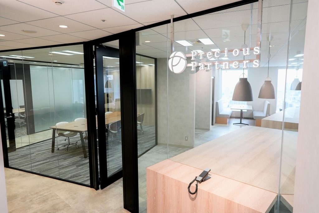 お越しいただいた皆さまに企業理念や想い・メッセージなどを視覚的にお伝えする空間となっており、オフィスに入る瞬間から、プレシャスパートナーズの雰囲気を感じていただけます✨