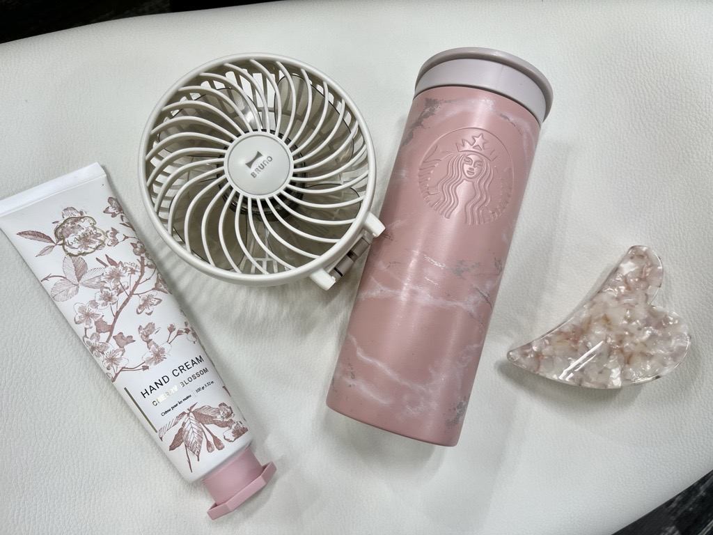 デスクにはピンクで統一された小物が置いてあり、デスクにいるだけで気分が上がりますね♪