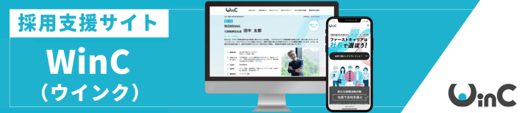「WinC(ウインク)」は、社長の想いやビジョンを発信し、その価値観に共感した学生と企業をつなぐ“理念共感型”の採用支援サービスです。