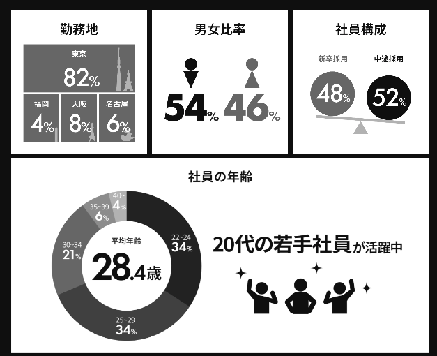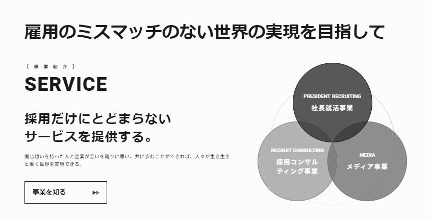 事業やサービスの特徴をわかりやすく紹介し、求職者が自分のビジョンとマッチするかを一目で理解しやすい構成にしました✨