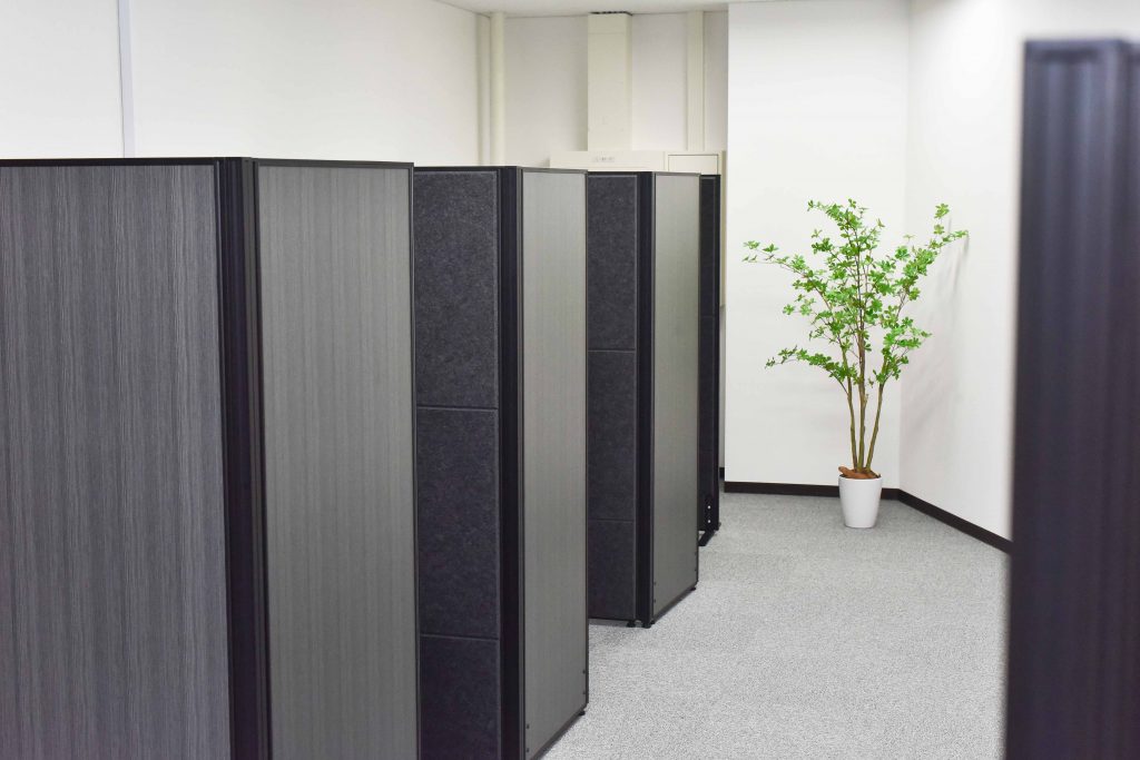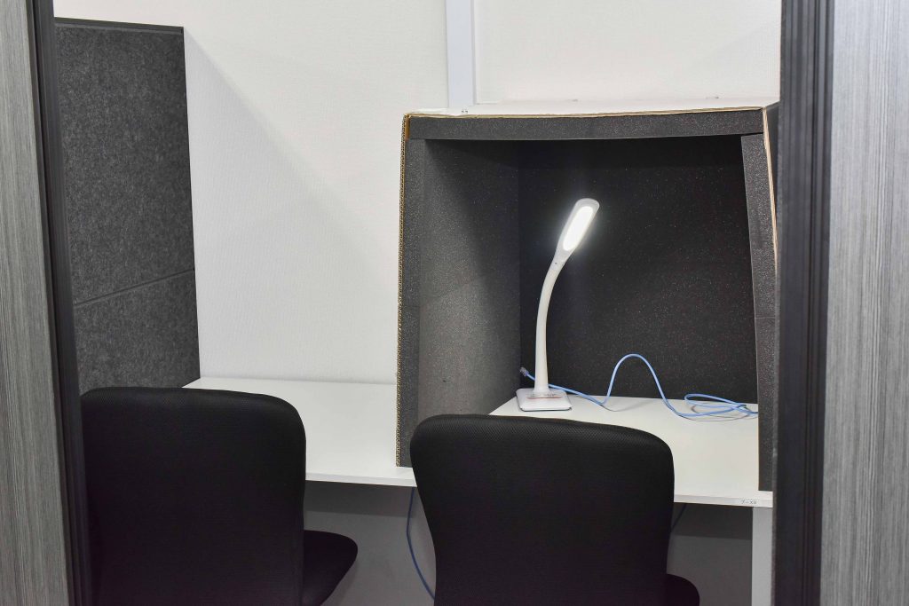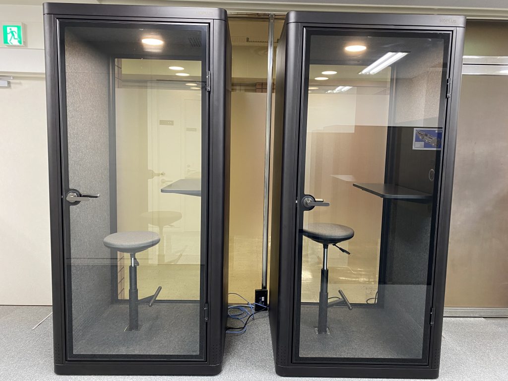 新型コロナウイルス感染拡大を機にオンライン商談や面接が増えたため、オンライン専用のブースを設置したのです。
