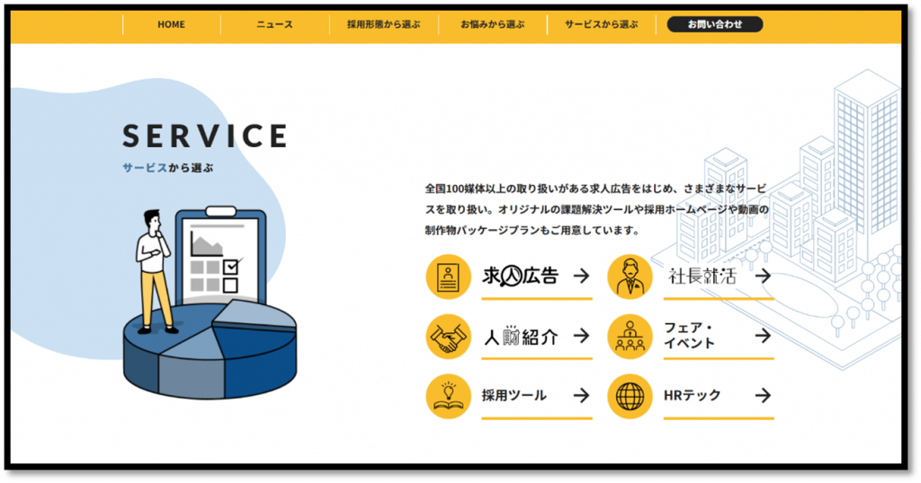 求人広告や採用支援サービスを全国で100サービス以上取り扱っており、その中から厳選したサービスを紹介しています!“採用の頼れるパートナー”として、企業の採用課題に対し多角的なアプローチを行い、最適なご提案が可能です🙌
