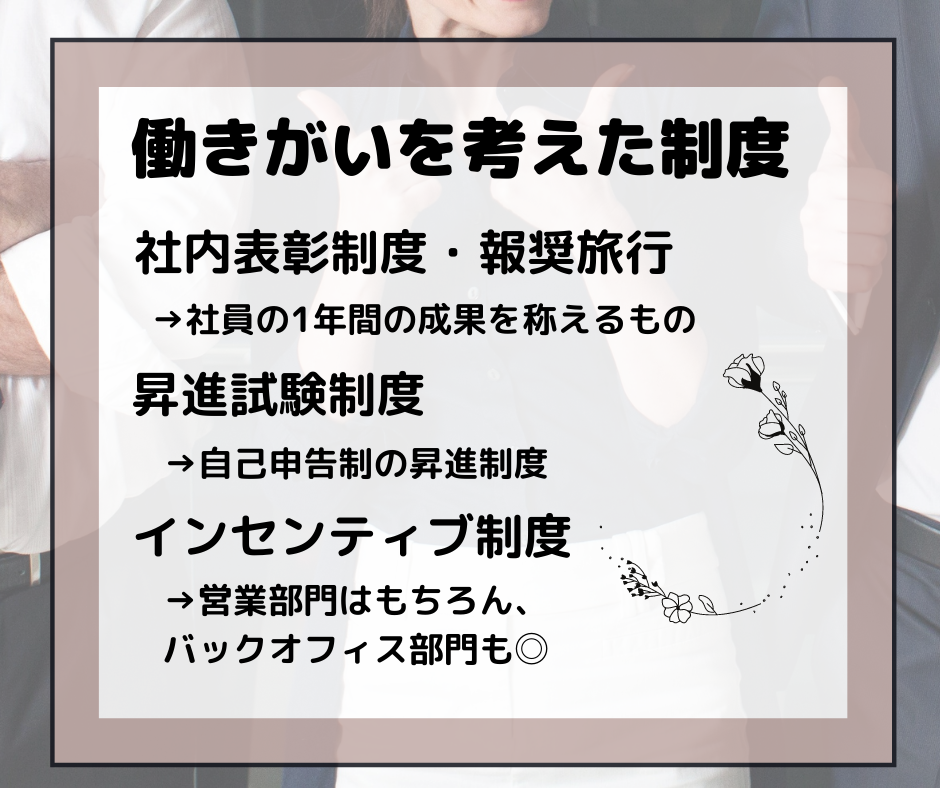 社内で定められた様々な条件を満たすことで、インセンティブが支給されます💰バックオフィス部門も対象にしたインセンティブもあるため、全社員のモチベーション向上につながっています✨