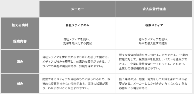 ●メーカー(媒体運営会社)と求人広告代理店の違い