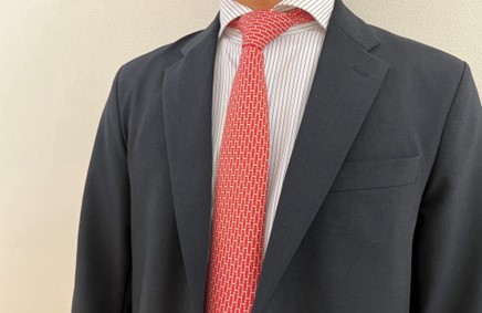赤の柄ネクタイがアクセントになっていてネイビーのスーツと相性がいいですね👔パソコンや資料が沢山入り、リュックは持ち運びにも便利!