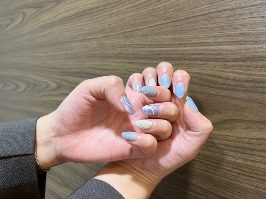 今はやりのマグネットネイルが輝いていますね✨水色が今の季節にぴったり☺