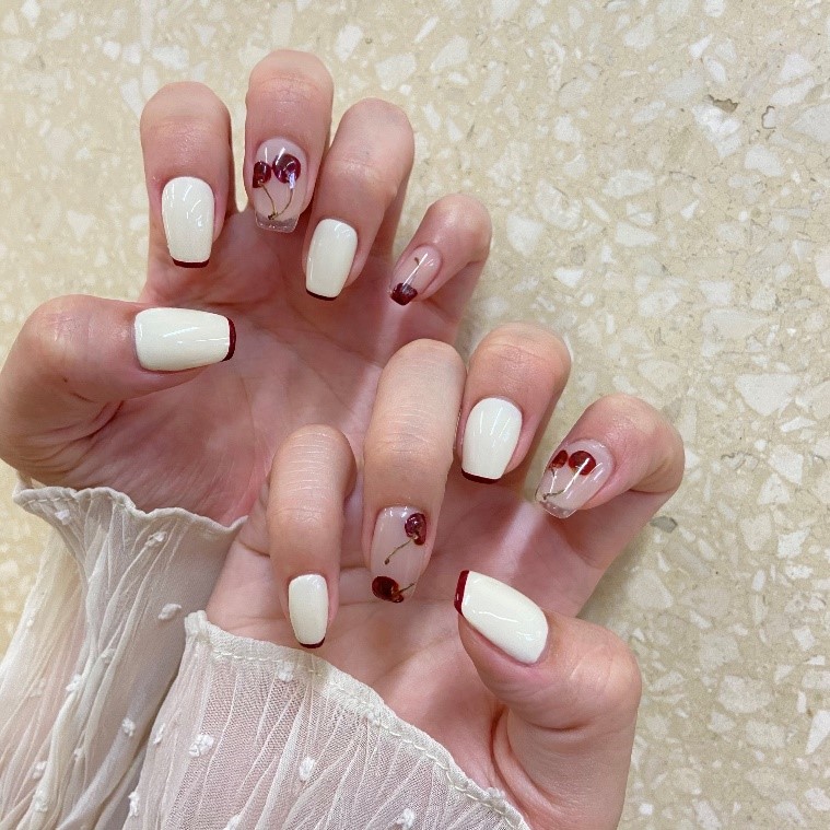 白と赤で統一され大人かわいいネイル♡Hさんの雰囲気にぴったりなネイルですね✨
