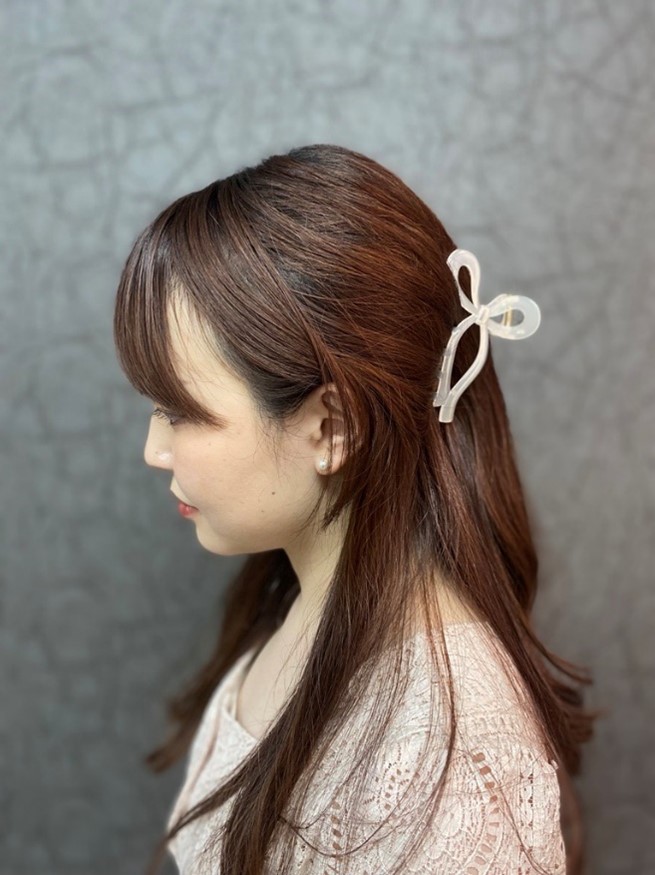 髪の毛はいつでもまとめることができるようにクリップを持ち歩いているんだそう!横から見るとリボンの形になったクリップが素敵🎀
