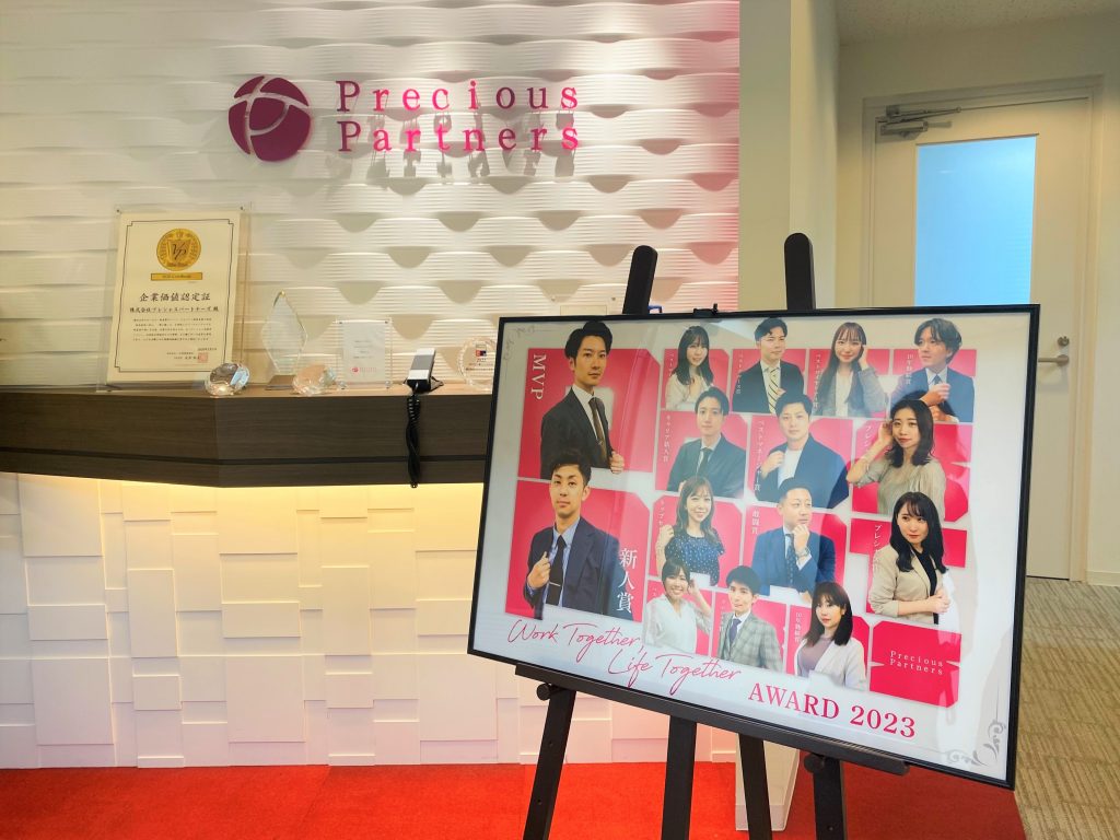 「Precious Partners」の文字に表彰メンバー一人ひとりが映っていて、会社の成長に貢献した”15期の顔”という特別感が伝わります✨