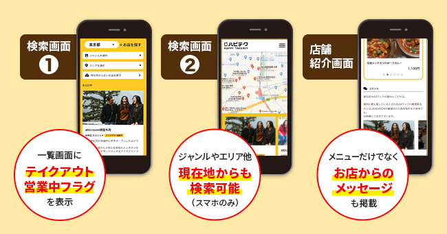 「ハピテク」、検索機能を大幅リニューアル!現在地の近くからテイクアウトができるお店をカンタン検索