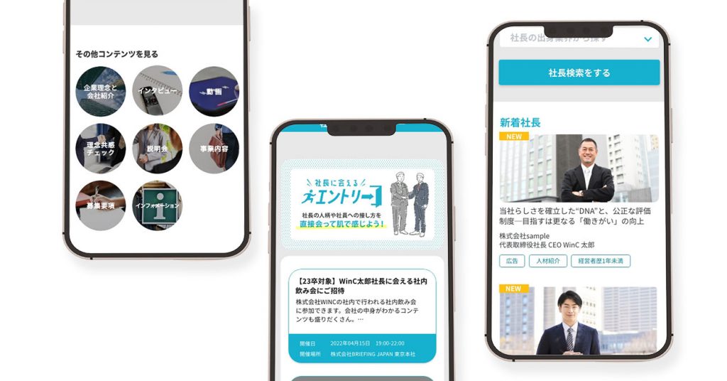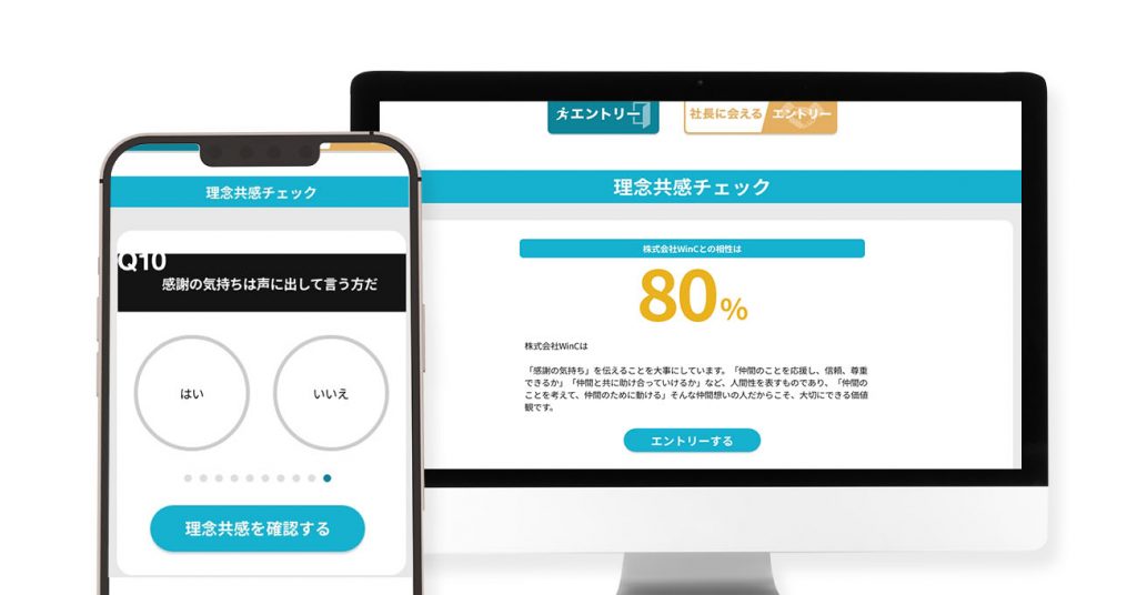 『WinC Career』のWinCは、「Will not Change=”変わらない”想い」の略称です。就職活動は、給与や仕事内容、勤務地など、「どこで何をするのか」を軸に企業探しをすることがスタンダードとなっています。しかし、企業は変化をしていくもの。給与や仕事内容、勤務地も、変化する場合がありますが、たった一つ、”経営者の想い”は変わることはありません。経営者の変わらない想いを発信し、想いに共感する学生と企業をつないでいきたいと思い、『WinC Career』と名付けました。