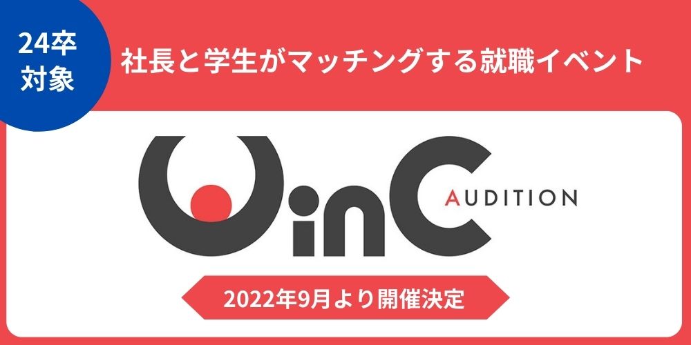 採用コンサルティング事業を行う株式会社プレシャスパートナーズ(本社:東京都新宿区、代表取締役社長 CEO:髙﨑 誠司、以下:プレシャスパートナーズ)は、社長・経営者と学生がマッチングする就職イベント「Recruit Audition(リクルートオーディション)」の名前を『WinC Audition(ウインクオーディション)』に改め、24新卒向け採用イベントを2022年9月よりスタートいたします。