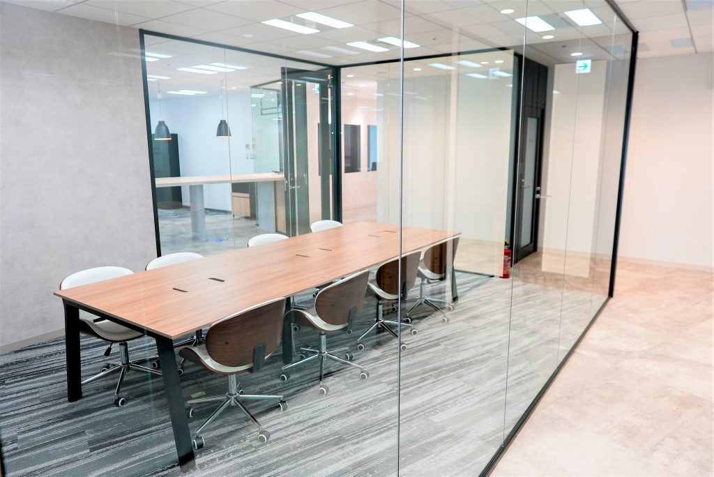 お客様や関係者の皆さまをご案内する会議室には、“西海岸風”の要素を取り入れ、名称を「Akala(アカラ/太陽)」、「Moana(モアナ/海)」 、「Mahina(マヒナ/月)」と名付けました。中会議室はオフィス全体の広さ・明るさを感じられるようガラス張りにしています。