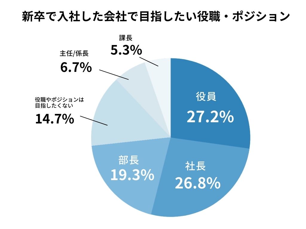 ・目指したい役職・ポジションは「役員」(27.2%)が最多、「社長」(26.8%)の回答を合算すると54.0%の学生が会社を経営するポジション(社長または役員)を目指したいと回答