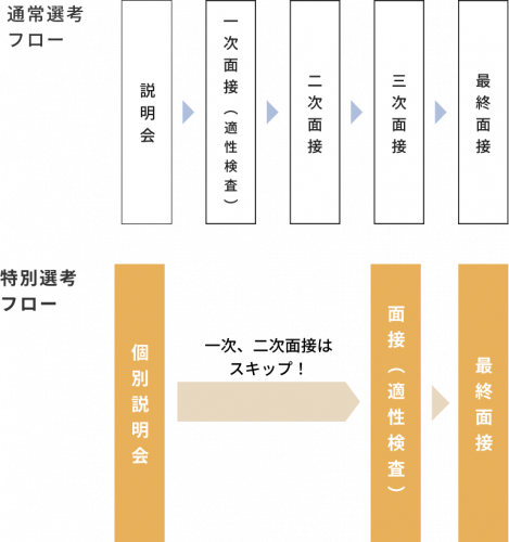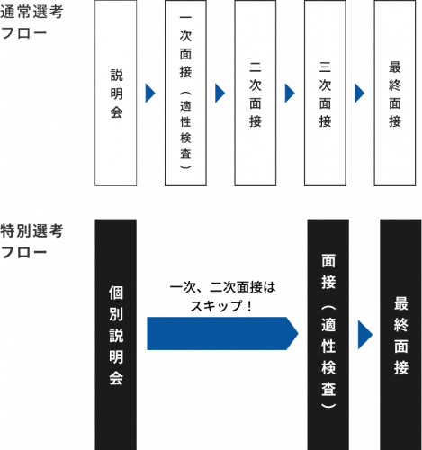 ※応募資格の条件に当てはまれば一次面接(グループ面接)・二次面接が免除となります。