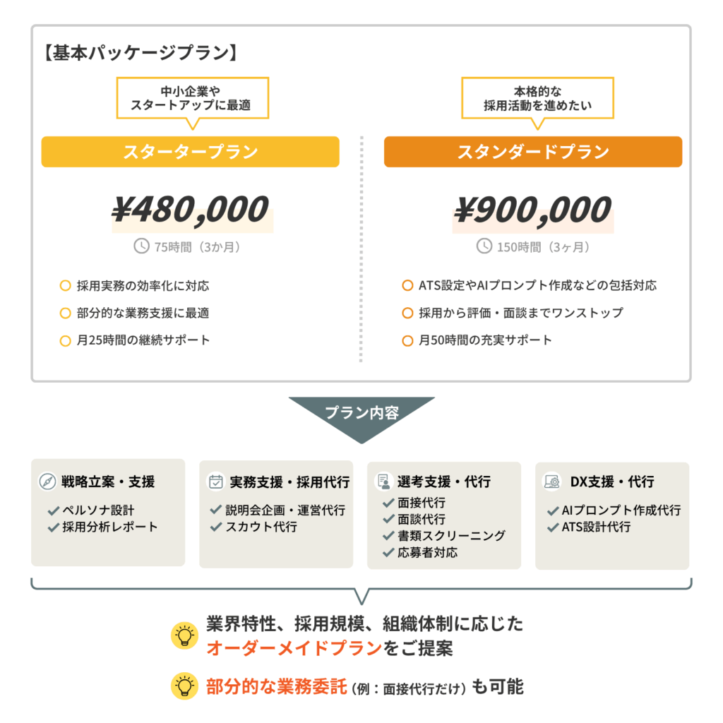 採用体制や課題に合わせて、最適なプランをご提案いたします。