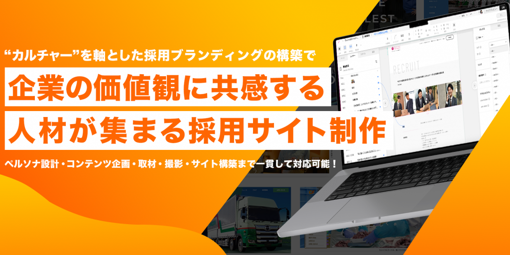ペルソナの設計や、会社の魅力を整理・言語化など上流工程から携わり、採用サイトを制作します。また、審査を通過したWeb制作会社やフリーランスのWebデザイナーが所属する「STUDIO Experts」に加盟し、高品質な採用サイトを短期間で作成いたします。