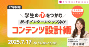 27卒採用に向けて、秋・冬のインターンシップ施策を検討中のご担当者様は、ぜひご参加ください。