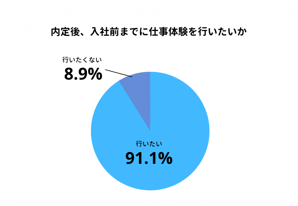 ・91.1%が入社前に内定先で仕事体験を行いたいと回答