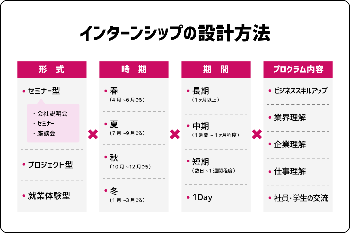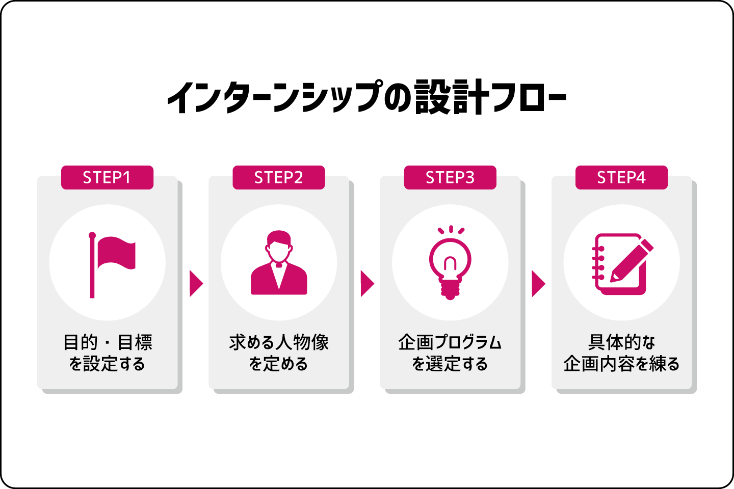 インターンシップのプログラムの設計には大きく分けて4つのステップがあります。