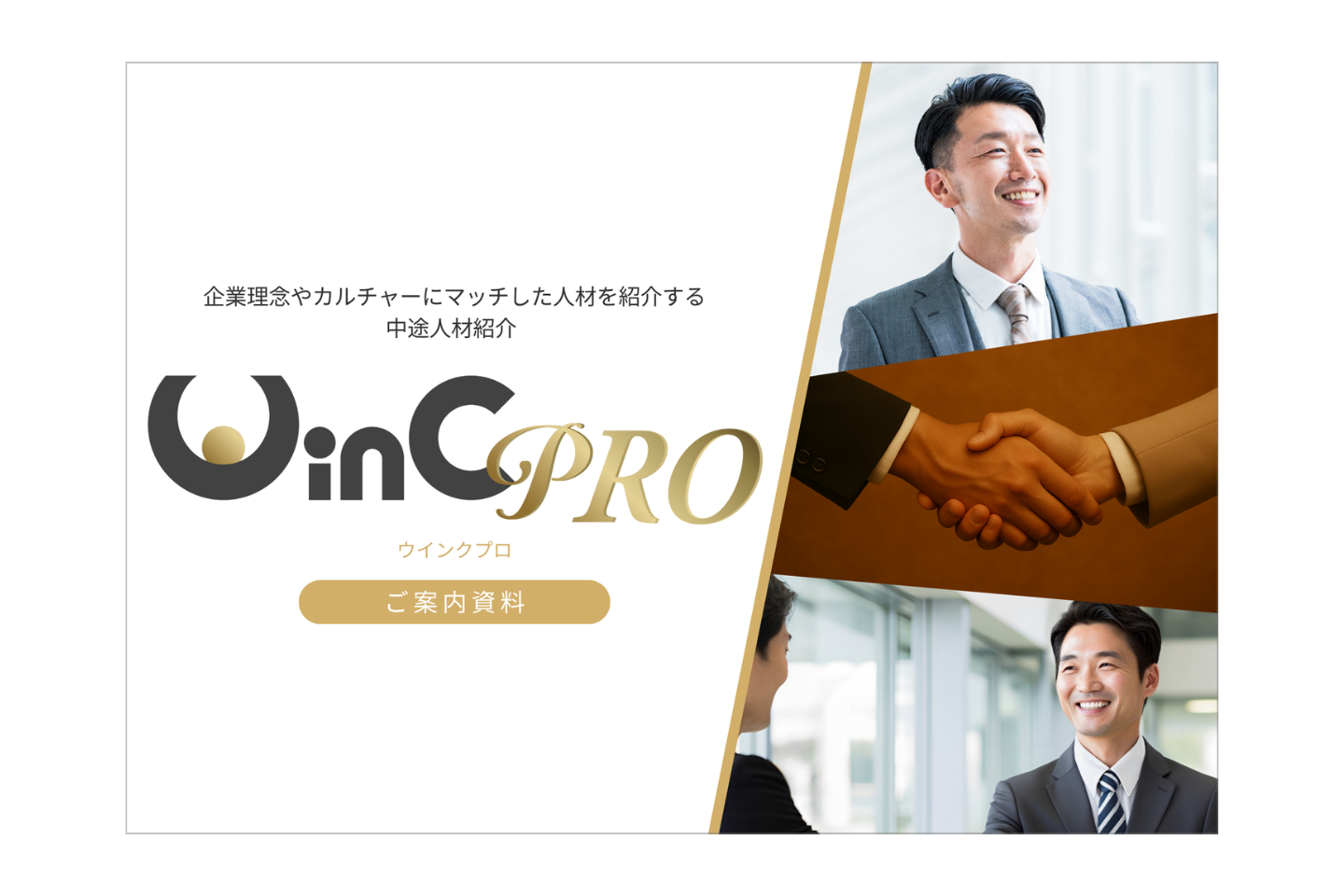 企業理念やカルチャーにマッチしたハイクラス人材・CxO人材をご紹介する中途人材紹介サービス「WinC PRO(ウインクプロ)」のサービス資料です。