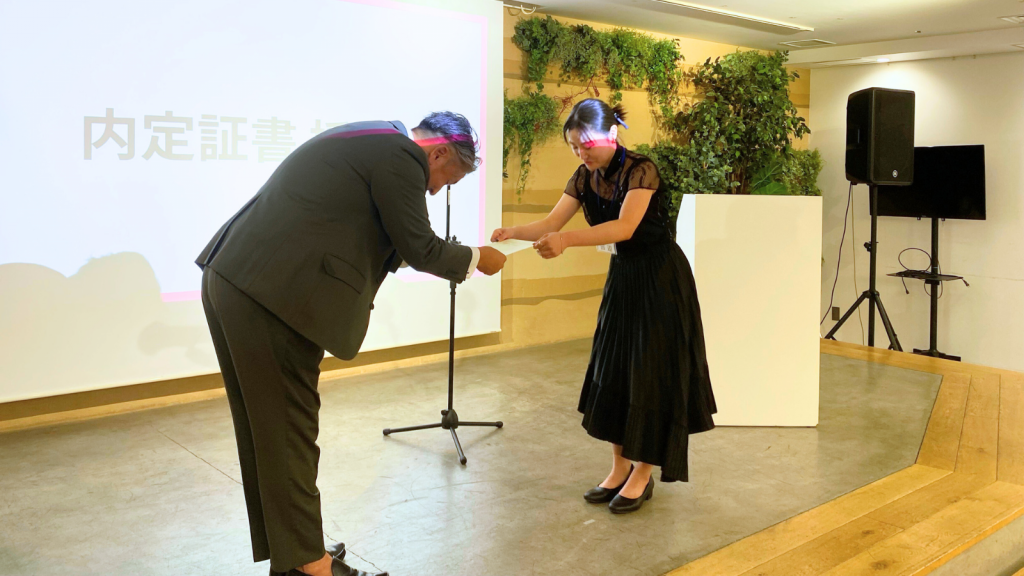 内定者の皆さんは、キラキラとした眼差しで証書を受け取り、